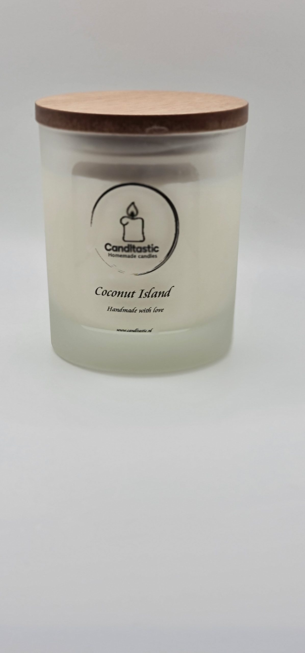 Deze heerlijke cocktail in een ecologische soja wax is hand gegoten in een frosted glas met een mooi houten dekseltje.